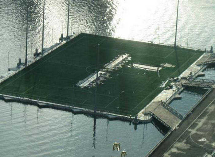 The Float at Marina Bay, is an architectural treat to the eyes. It is the only stadium in the world that literally floats. At 120 meters long and 83 meters wide, this floating stage is the largest in the world. Located on the Marina Reservoir in Marine bay, this massive stage has the capacity of seating 9000 people. The total weight capacity of it is 1,070 tones.